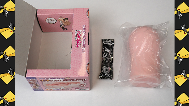 盒子顶面是宫濑真寻(宮瀬まひろ)老师绘制的可爱金发美少女,背景的镜子反射了纯白胖次(彩蛋),作者名字于右侧有标注。