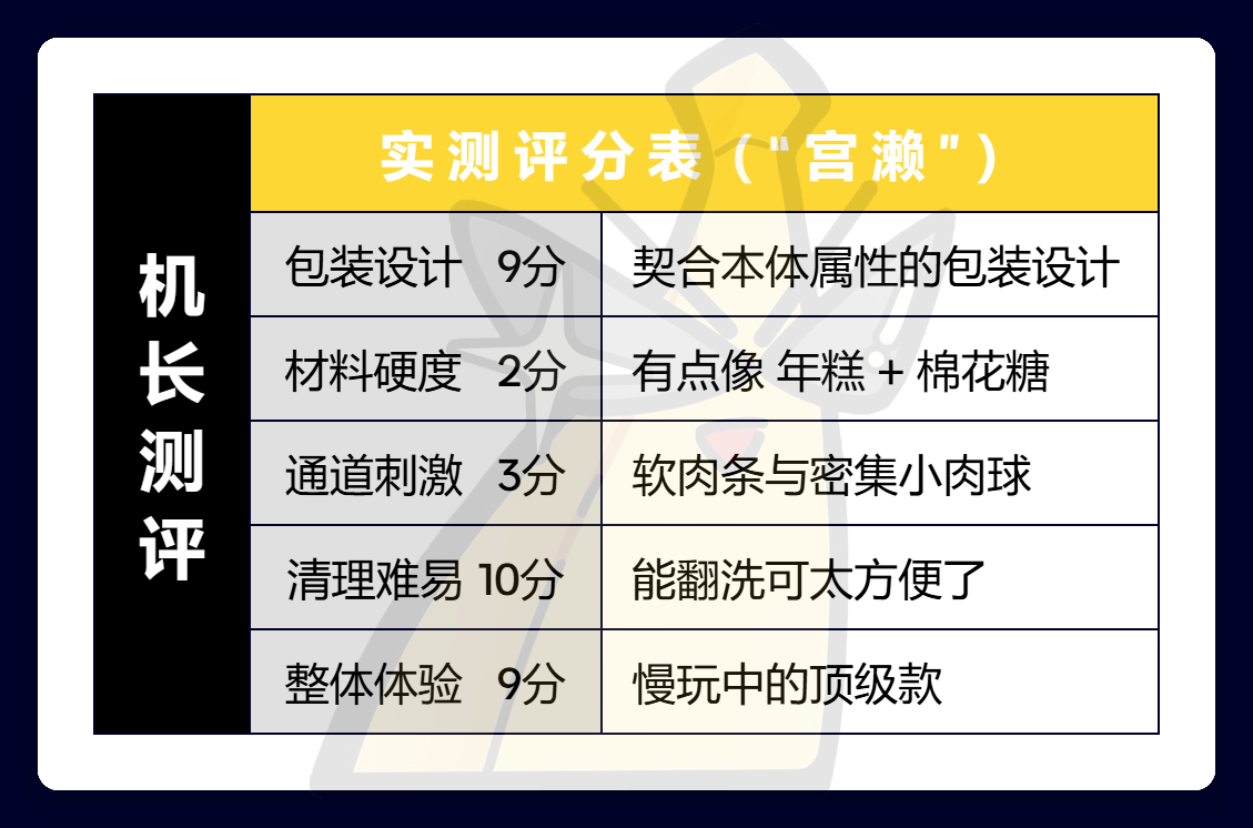 至于排气,这款产品几乎没有“排气功能”,但老实说我感觉也貌似用不上什么排气,“宫濑”的主要刺激只来自由弹力造成的肉条压迫感,无需在意“排气”带来的包裹感,再加上其内部的连贯性,使进入变得十分顺畅,有一说一这样真没排气什么事了。