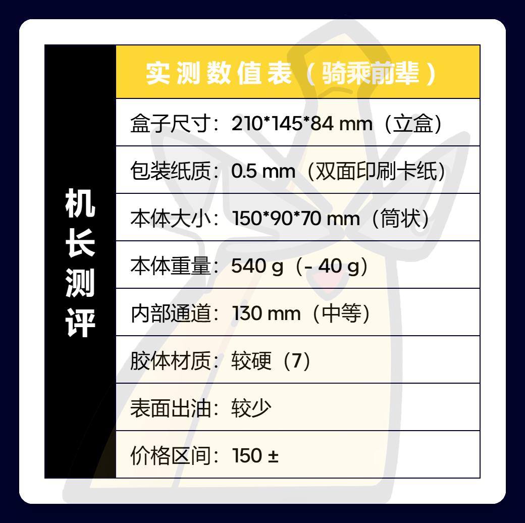 使整体通道提供了一种前窄厚宽、压感不错的触感,以及刺激区中上的强度