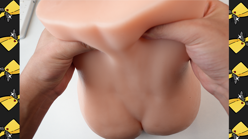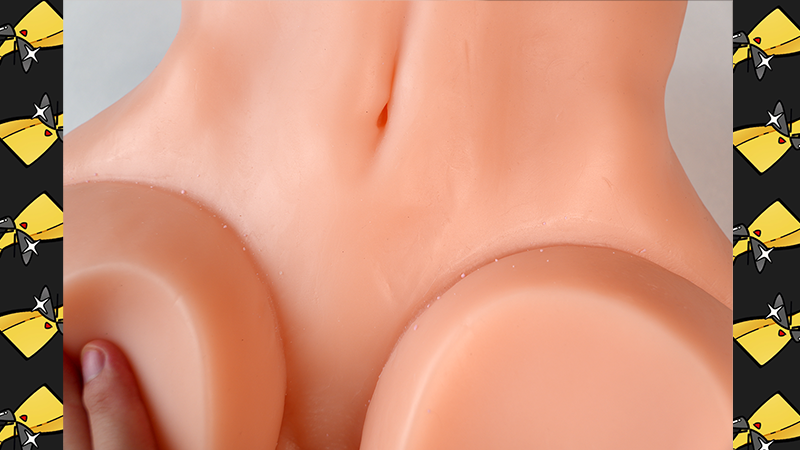 大腿根因为内部的软料填充导致凹陷,而且看上去外层的硬质覆膜侧面比切面要厚不少