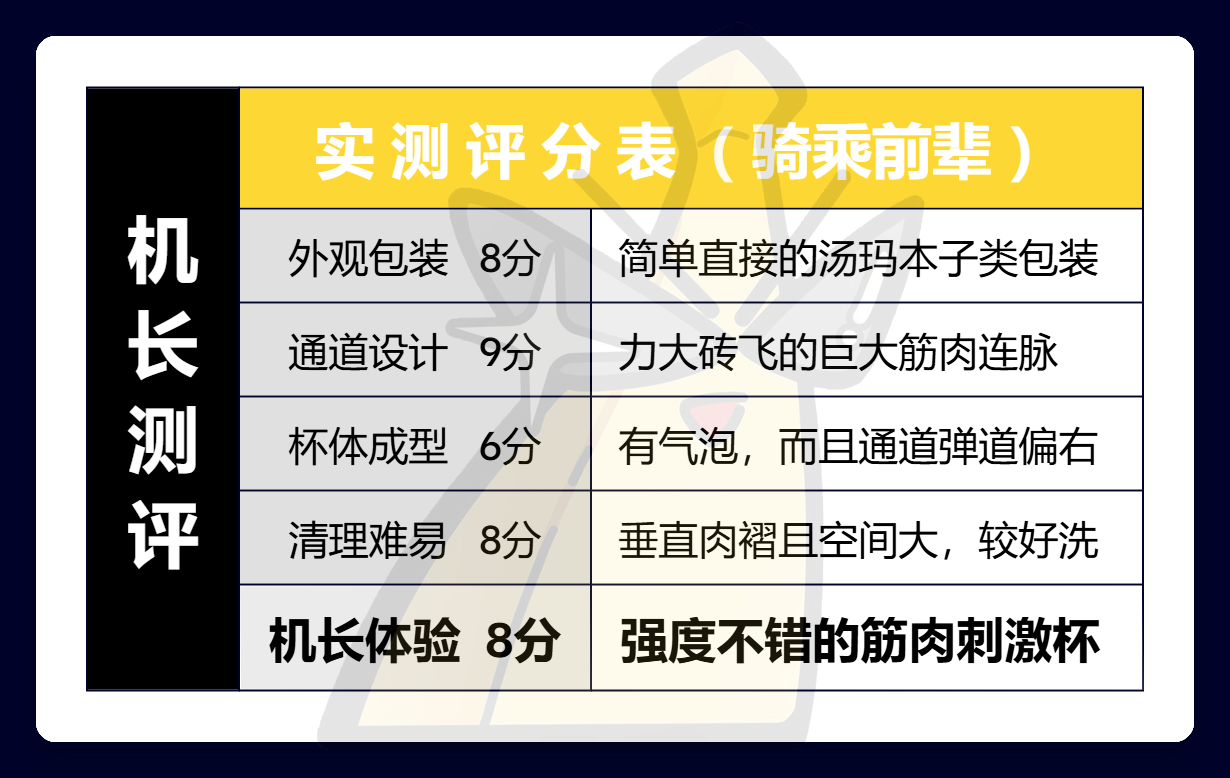 使整体通道提供了一种前窄厚宽、压感不错的触感,以及刺激区中上的强度