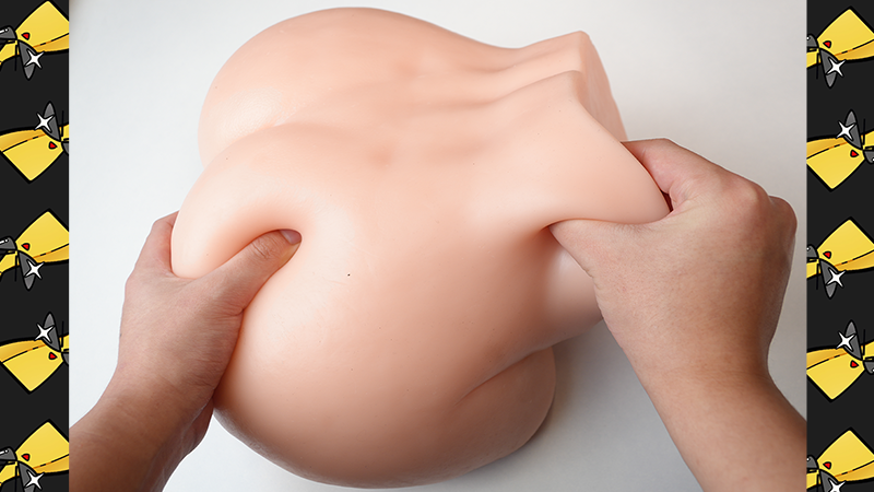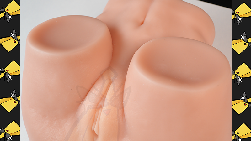 大腿根因为内部的软料填充导致凹陷,而且看上去外层的硬质覆膜侧面比切面要厚不少